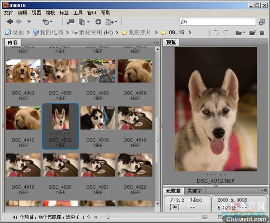 使用Adobe Bridge进行预览,本图为竖拍,单击Bridge右上角的“逆时针旋转90度”按钮,将它竖立起来。