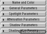 不管是哪一种灯光,创建时都有 6 个极其类似卷帘,例如聚光灯的 6 个卷帘如下图所示: