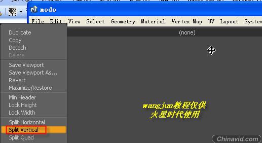 5、继续分割上面的界面,按下Ctrl键的同时,使用鼠标左键按住视图左上角的圆点,并向右拖拉,把视图在水平方向分割成两个部分。如图05所示