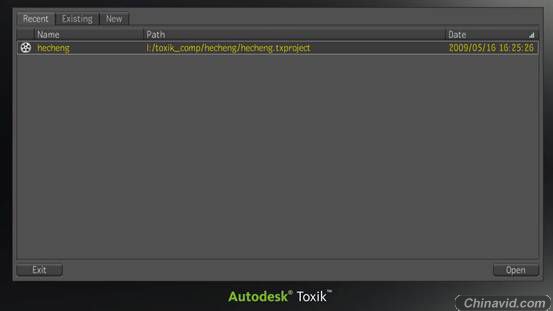 1. 如果要打开一个已有的工程,那么我们需要首先退出Toxik (快捷键Ctrl + Q) 。因为之前我们说过Toxik一次只能打开一个工程。