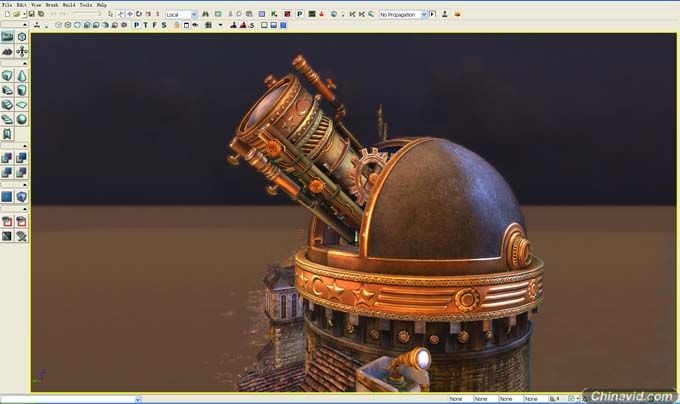 当把所有物件导入虚幻3引擎中并且整合好后,就要考虑灯光的问题了,辛苦制作的第二套UV也不能白费了,灯光的制作我参考的《三位一体》的灯光效果,想营造一种魔幻的感觉,灯光最后制作效果如下: