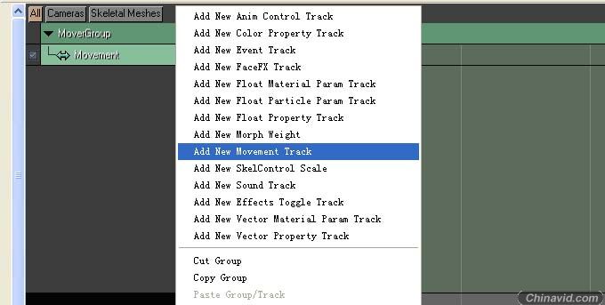 右击Matinee界面的MoverGroup选择Add New Movement Track