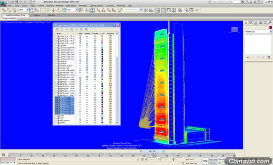 28:Exposure™ lighting analysis Exposure™ lighting analysis是3ds Max Design 2010才有的照明分析工具,3ds Max 2010并没有此项工具。该工具可以直接在视口中分析太阳、天空和人工照明,并且以颜色的不同来表示光线的强弱。该项技术已得到加拿大国家研究院认证。