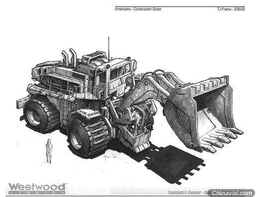 我们再来看看图,这是一张westwood的设计手稿,同样也是一辆推土机,他是张概念设计,也就是机械设定,