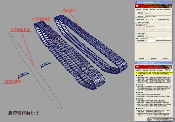 (注:插件很简单但是需要注意的就是产说的设置与选项的设置。在就事你生成的履带会出现轴向的错误的问题这样的话就需要我们进行手动的调整。)