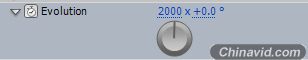 第六步:在时间线开始出,给Evolution属性打一个关键帧。然后到时间线末尾处在K帧把它的数值提升到一个较高的数值。在这个教程里我个人使用Evolution值为2000,把Mode改为Silhouette Luma.