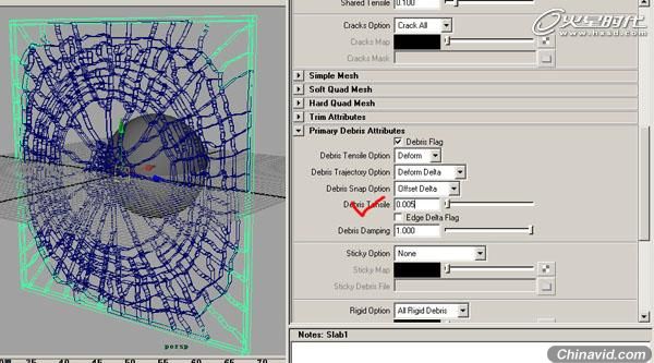 修改SLAB面板下的Primary Debris Attributes一级碎片属性下的Debris Tensile这个值,它是控制DAMAGE层表面随片的张力值。