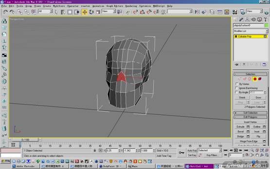7 颧骨下方的凹陷部位同样使用挤压命令得到。通过多次挤压调点得到了头骨的初期形状。