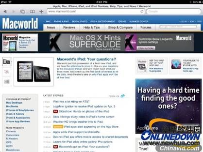 #1、在iPad的Safari浏览器中所打开的Macworld主页界面。