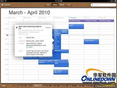 #7、iPad中的日历看起来就像是一本书,右侧的是事件列表。