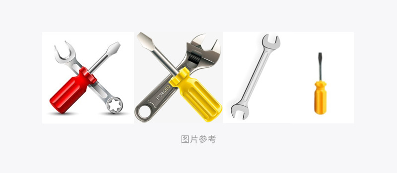 绘制微质感图标,第一步需要找到一个适合的图片参考。我找了以下几个扳手和螺丝刀的实物图,用于基础形状的绘制。
