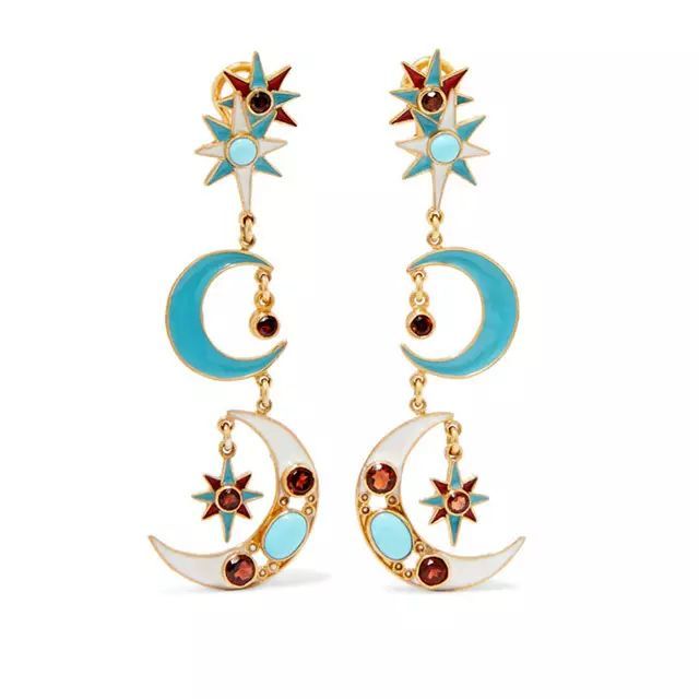 由大小不一的太阳和月亮缀饰组合而成的耳环搪瓷涂漆